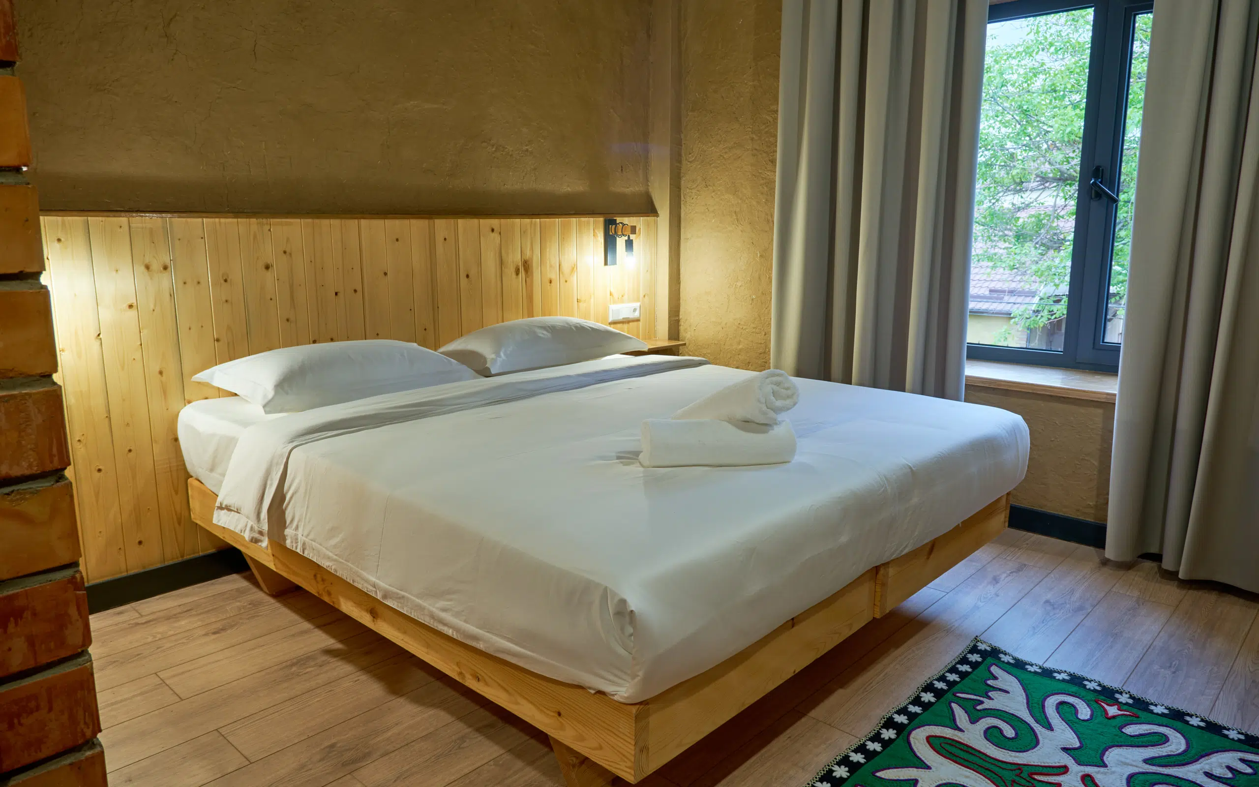Наш уютный отель с 15 номерами сочетает в себе тепло, комфорт и заботу об окружающей среде. Здесь всё — от ручной отделки до аромата глиняных стен, прогретых солнцем — приглашает вас замедлиться, вдохнуть глубже и прочувствовать настоящую гармонию.